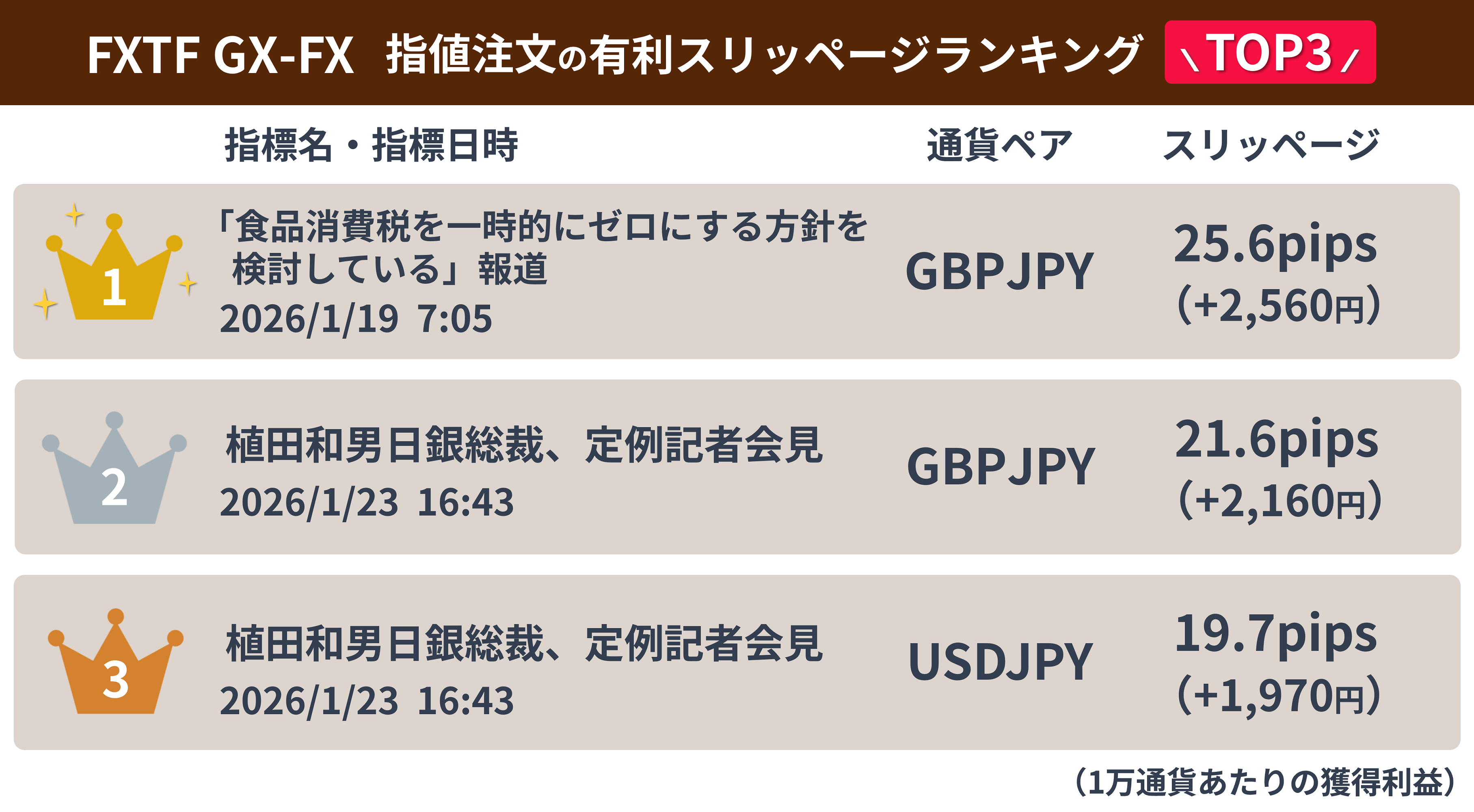 2026年1月度「FXTF GX」指値の有利スリッページ実績について